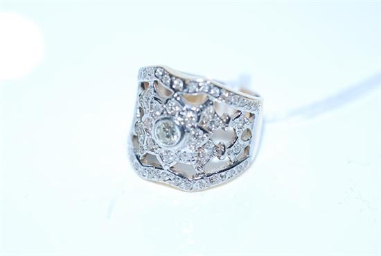 A FANCY YELLOW AND DIAMOND RING CENTRALLY SET WITH A PRINCESS CUT DIAMOND WEIGHING 1.03CTS WITH DIAMOND SURROUND AND SPLIT DIAMOND S...