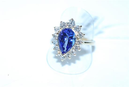 A TANZANITE AND DIAMOND RING