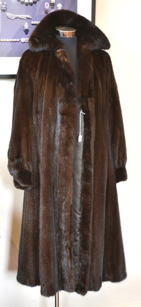 The fully stranded coat with wide collar and dolman sleeves, centre back length 11507cm.