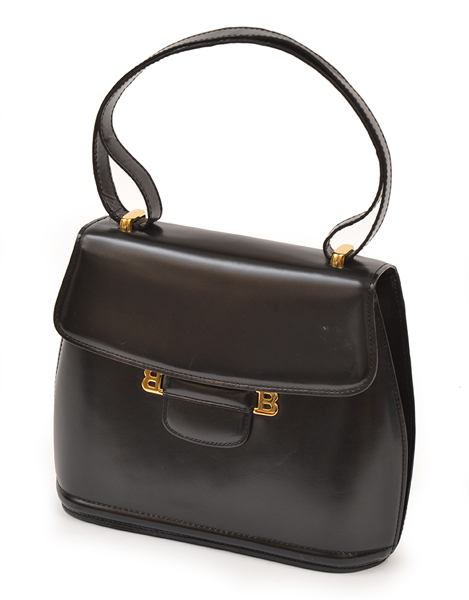 Styled in black leather with gold metal hardware, 24 x 20 x 8cm.