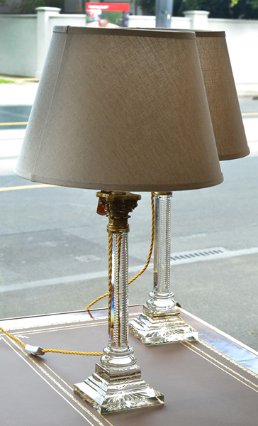 A PAIR OF IMPRESSIVE CRYSTAL AND BRASS MOUNTED TABLE LAMPS EACH 79 CMS HIGH