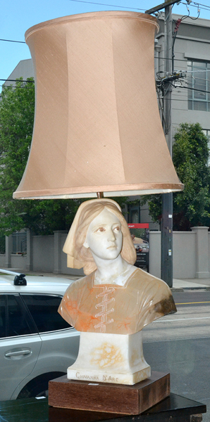 AN ALABASTER TABLE LAMP IN THE FORM OF JOAN OF ARC 53 CMS
