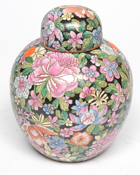 FAMILLE ROSE LIDDED GLOBULAR JAR 26 CMS