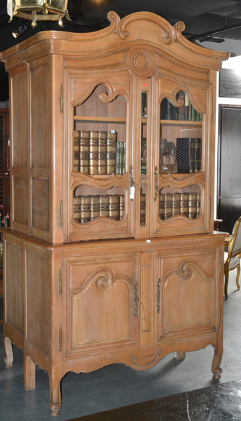 A FRENCH PROVINCIAL OPEN DOOR BOOK CASE WITH 2 DOORS UNDER 132 X 240 CMS