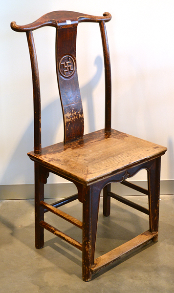 A PAIR OF CHINESE OFFICIALS HAT ELM CHAIRS 55 X 105 CMS