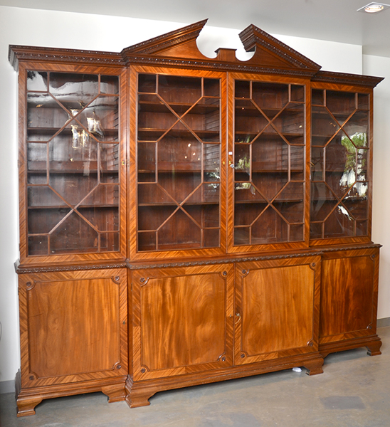 AN IMPOSING GEORGE THE 3RD MAHOGANY BREAK FRONT ASTRAL GLAZED BOOK CASE 288 X 318 X 60 CMS