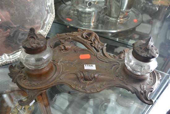 A FINE QUALITY VICTORIAN SILVER PLATE AND CRYSTAL CONDIMENT SET HOUSED ON STAND (COMPLETE)