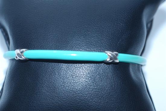 The half round bangle set with the signature Tiffany aqua enamel and crosses, in sterling silver.