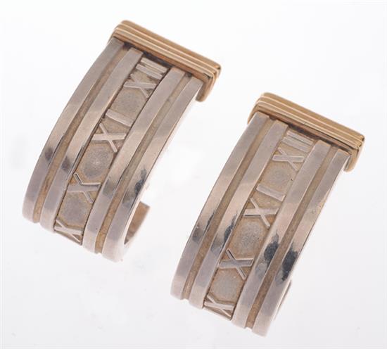 From the 'Atlas' range, the 13mm wide hoops with Roman numeral motifs to post and clip fittings, in sterling silver, with 18ct gold detail.