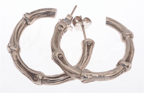 The bamboo pattern hoops to post and butterfly fittings, in sterling silver.