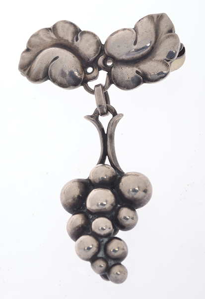 Designed by Harald Nielsen, of grape and foliate design, in sterling silver, reference 217.