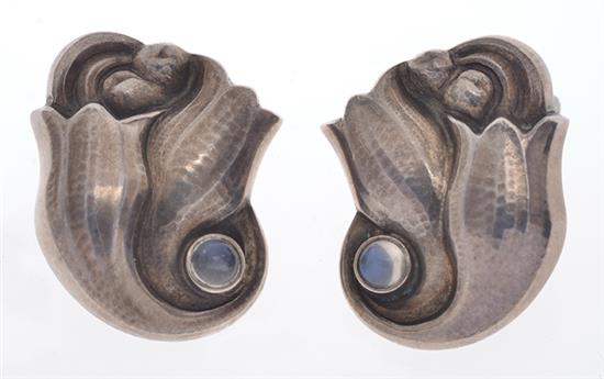 Of stylised tulip design, with moonstone detail, to clip fittings in sterling silver, reference 100A.
