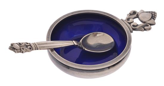 A SALT CELLAR AND SPOON BY GEORG JENSEN