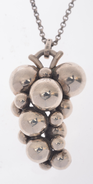 From the "Moonlight Grapes" range, the grape design pendant and chain with foliate detail, both in sterling silver.