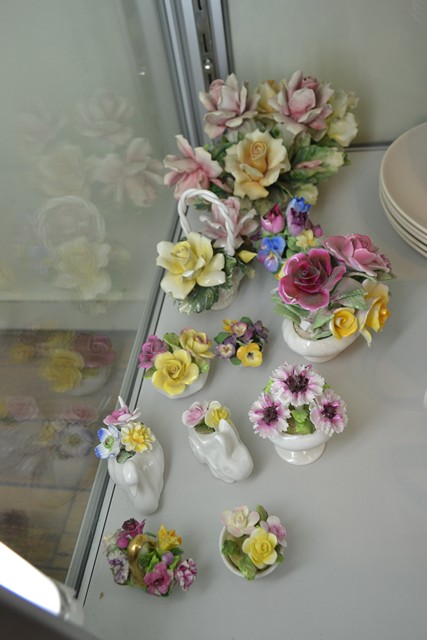 A COLLECTION OF FLORAL GROUPS INCLUDING COALPORT, CROWN DERBY ETC (SOME CHIPPED)
