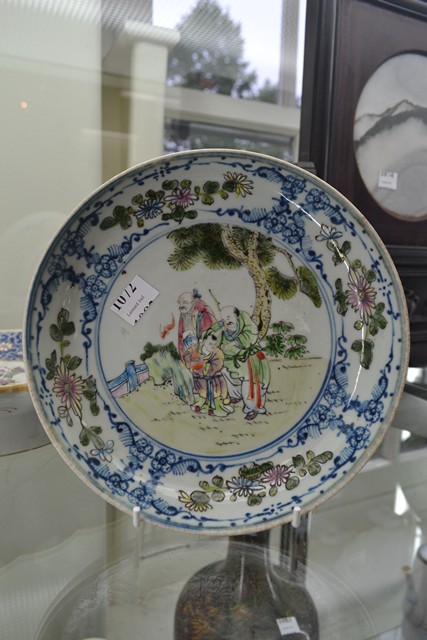 CHINESE HAND ENAMELLED CABINET PLATE WITH SIX CHARACTER MARK TO BASE