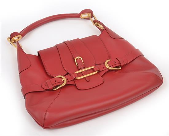Styled in deep red leather with gold metal hardware, 37 x 23cm.