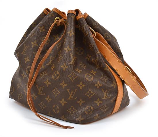 Styled in Monogram canvas with tan metal trim and gold metal hardware, M42226, 24 x 27 x 18cm.