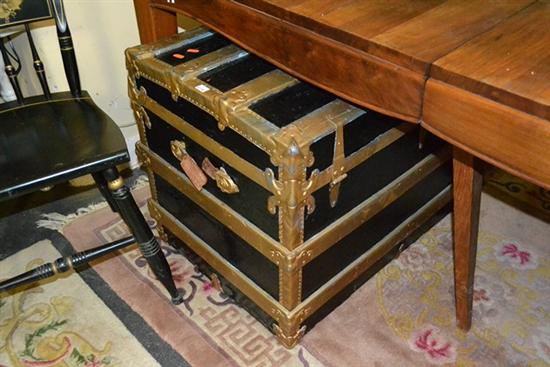 A 19th CENTURY CEDAR PORTABLE SURVEYORS WRITING DESK BELONGING TO E. S. BENNETT, WITH ORIENTAL METAL FITTINGS AND INSCRIPTIONS TO FR...