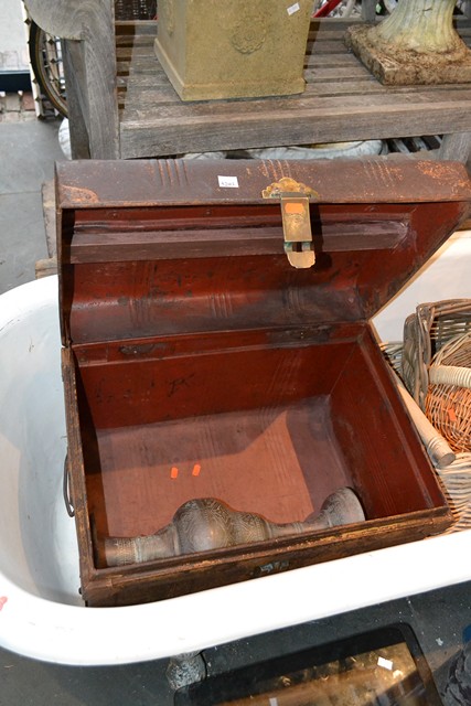 A 19th CENTURY CEDAR PORTABLE SURVEYORS WRITING DESK BELONGING TO E. S. BENNETT, WITH ORIENTAL METAL FITTINGS AND INSCRIPTIONS TO FR...
