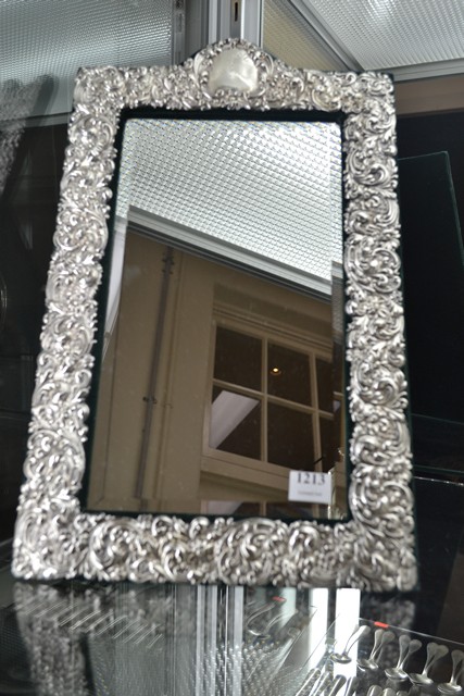 WALKER AND HALL STERLING SILVER EMBOSSED TABLE MIRROR (SMALL DENT)