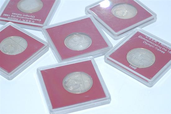 A FANCY YELLOW EMERALD CUT DIAMOND WEIGHING 1.02 CLUSTER RING IN 18CT WHITE GOLD *