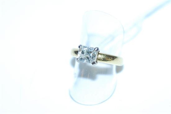 A FANCY YELLOW AND DIAMOND RING CENTRALLY SET WITH A PRINCESS CUT DIAMOND WEIGHING 1.03CTS WITH DIAMOND SURROUND AND SPLIT DIAMOND S...