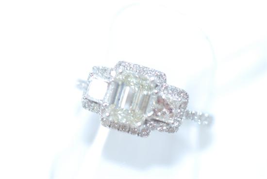 A FANCY YELLOW AND DIAMOND RING CENTRALLY SET WITH A PRINCESS CUT DIAMOND WEIGHING 1.03CTS WITH DIAMOND SURROUND AND SPLIT DIAMOND S...