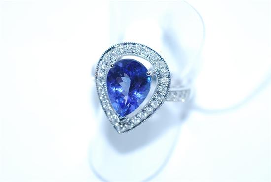 A TANZANITE AND DIAMOND RING