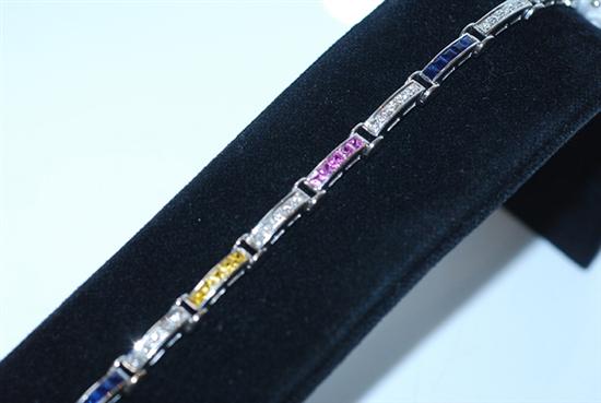 A FANCY YELLOW EMERALD CUT DIAMOND WEIGHING 1.02 CLUSTER RING IN 18CT WHITE GOLD *