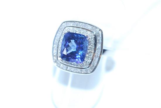 A FANCY YELLOW EMERALD CUT DIAMOND WEIGHING 1.02 CLUSTER RING IN 18CT WHITE GOLD *
