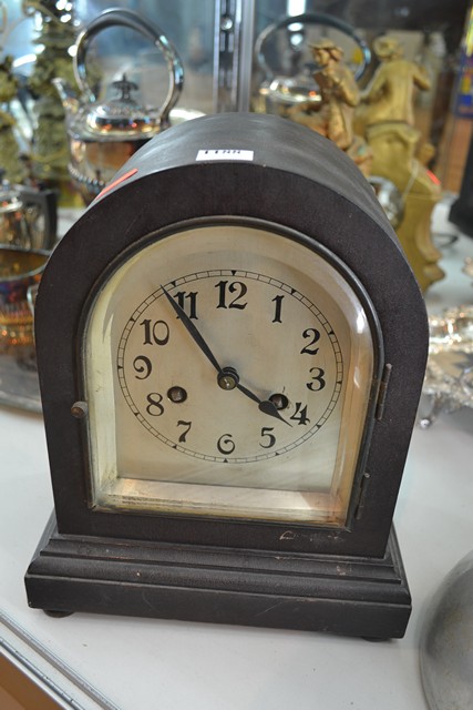 ART DECO MANTLE CLOCK (ONE FOOT MISSING, KEY WITH STAFF)
