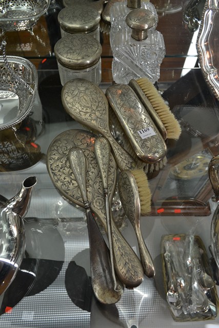 NINE PIECE 800 SILVER MOUNTED DRESSING TABLE SET