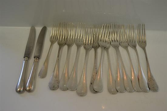 AN 830 SILVER CUTLERY SET FOR TWELVE PLUS LADLE AND SERVING FORK, SPOON (TWO ENTREE FORKS MISSING)