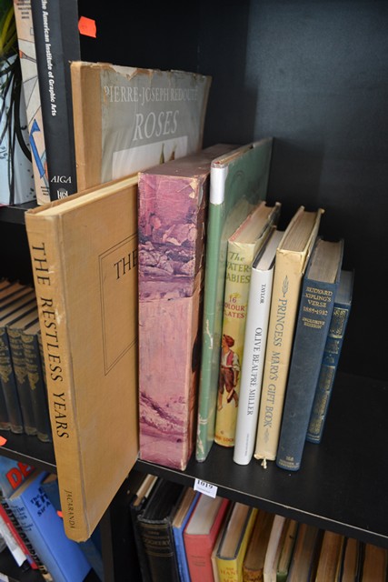 ONE SHELF OF ASSORTED VINTAGE BOOKS INCL., THE WATER BABIES, ROSES ETC