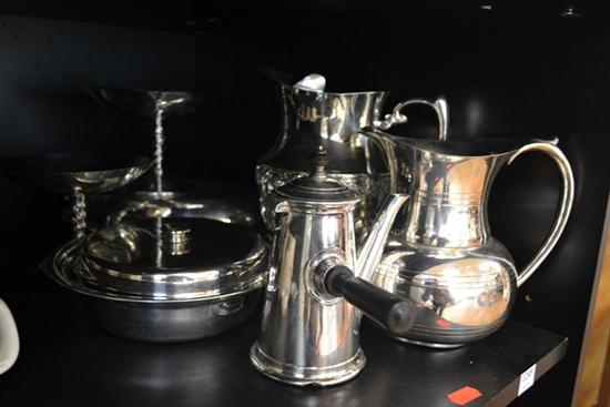 A FINE QUALITY VICTORIAN SILVER PLATE AND CRYSTAL CONDIMENT SET HOUSED ON STAND (COMPLETE)