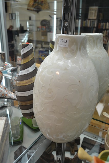 TWO PATTERNED CERAMIC VASES