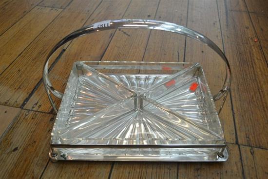 AN EP FOOTED TRAY WITH SECTIONAL GLASS INSERTS, MONOGRAM TO HANDLE
