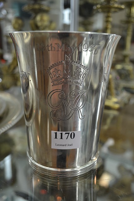 A SPREY STERLING SILVER COMMEMORATIVE CUP INSCRIBED '12TH MAY 1937- HERE'S HEALTH UNTO HIS MAJESTY'