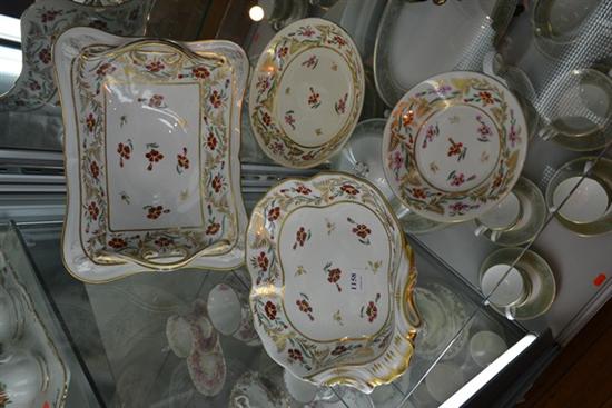 FIVE PIECES OF ROYAL CROWN DERBY INCLUDING BASKET, PLATES ETC, CIRCA 1800'S