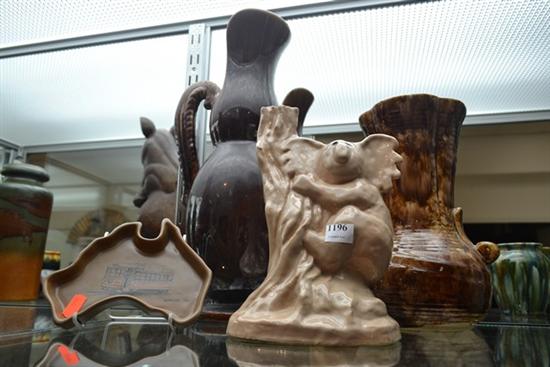 GROUP OF FOUR AUSTRALIAN POTTERY ITEMS INC. FOWLER WARE JUG, STUDIO ETC