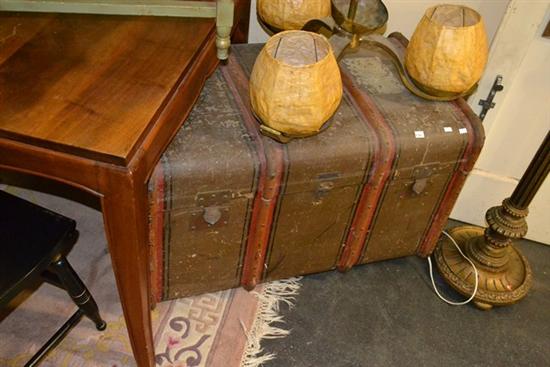 A 19th CENTURY CEDAR PORTABLE SURVEYORS WRITING DESK BELONGING TO E. S. BENNETT, WITH ORIENTAL METAL FITTINGS AND INSCRIPTIONS TO FR...