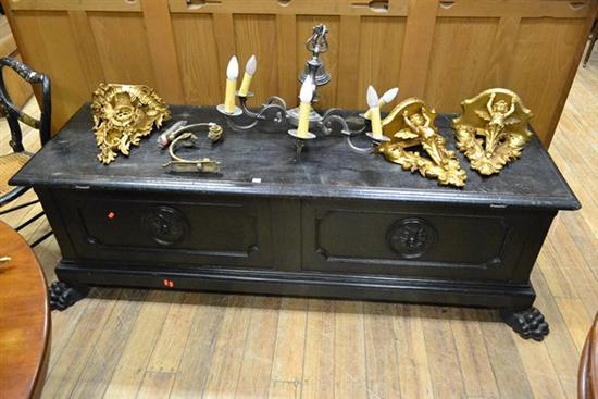 A 19th CENTURY CEDAR PORTABLE SURVEYORS WRITING DESK BELONGING TO E. S. BENNETT, WITH ORIENTAL METAL FITTINGS AND INSCRIPTIONS TO FR...