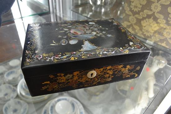 VICTORIAN MOTHER OF PEARL INLAID LACQUER BOX