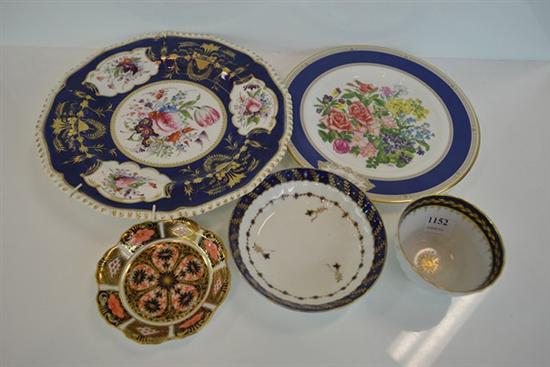 19TH CENTURY BLOOR DERBY HAND PAINTED CABINET PLATE, 19TH CENTURY TEA BOWL AND SAUCER, COLLECTOR PLATE AND ROYAL CROWN DERBY IMARI PATTERN DISH