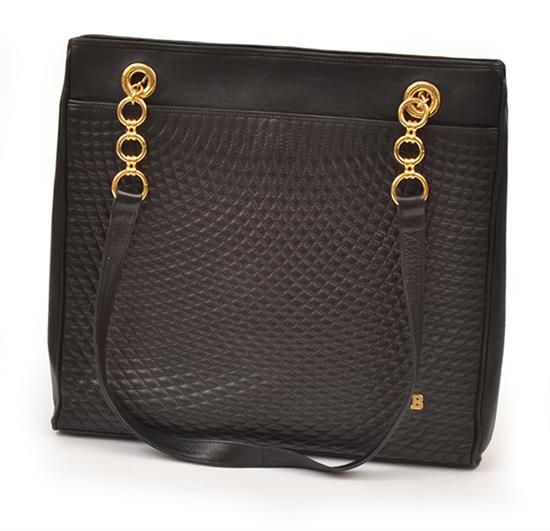 Styled in deep French navy quilted leather with gold metal hardware, 33 x 32 x 9cm.