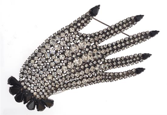 Styled in black and colourless rhinestones, retailed by Georges Melbourne, boxed.