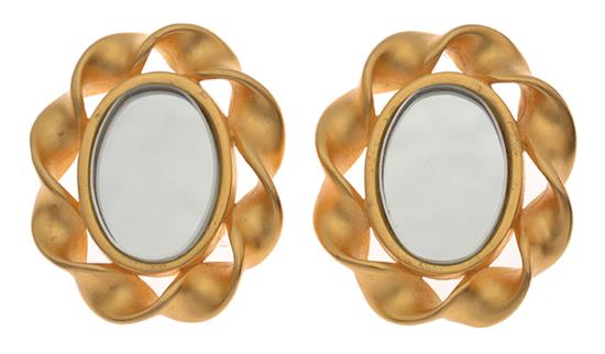The central oval mirror with a twisted border, in gilt metal to clip fittings.
