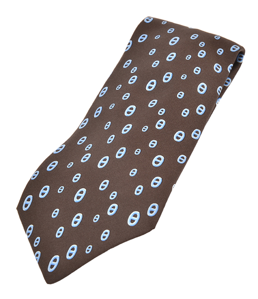 Styled with the classic Chain D'Ancre design in pale blue on a chocolate background, boxed.