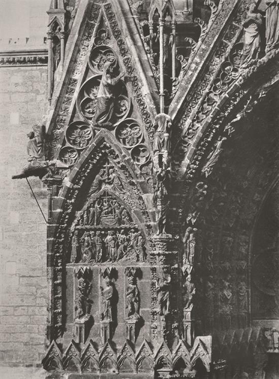Reims Cathedral Notre-Dame, Tympan et Gable a Gauche du Portail de Gauche, l'Angle Nord, circa 1852-1870